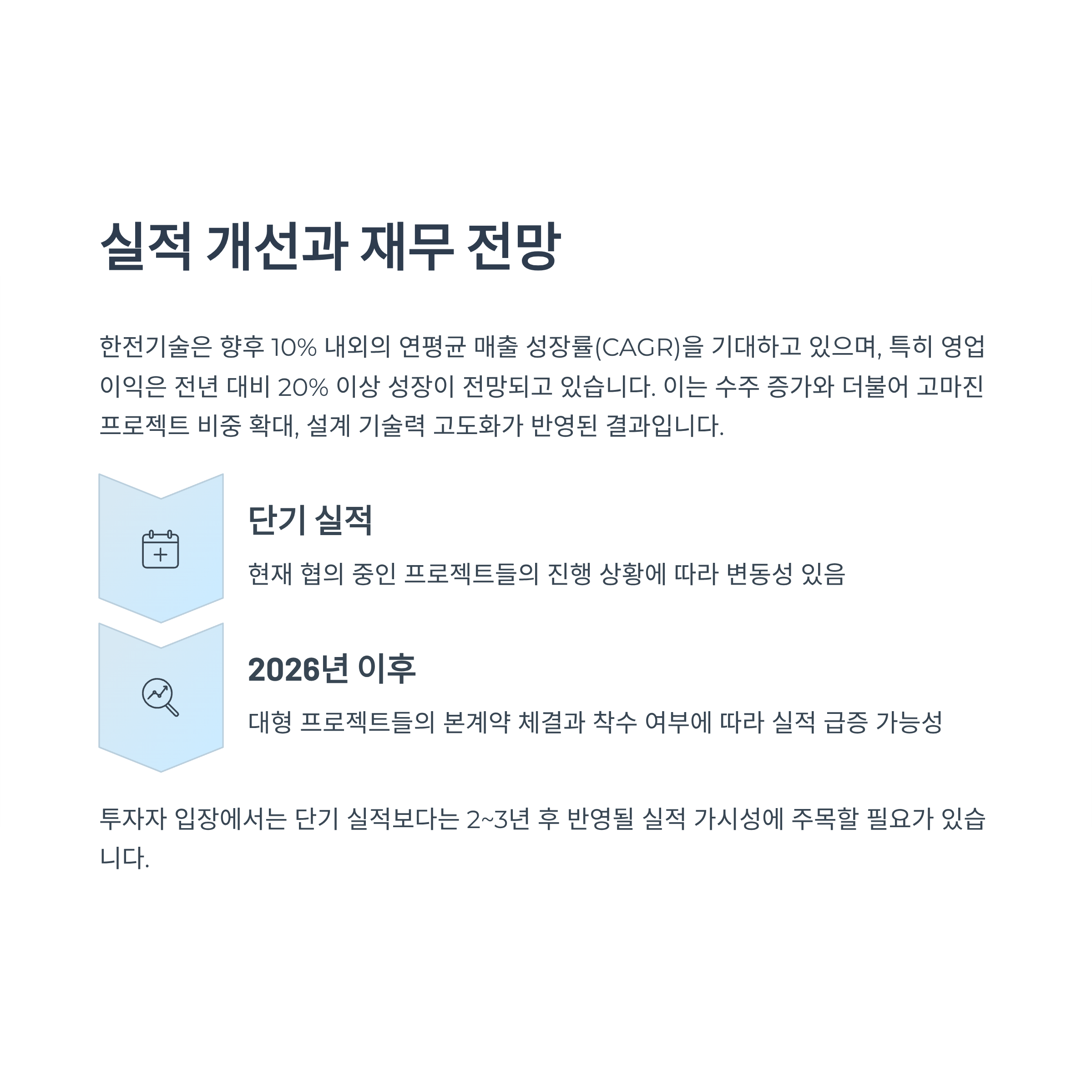 특히 2026년 이후로는 현재 협의 중인 대형 프로젝트들의 본계약 체결과 착수 여부에 따라 실적이 급증할 수 있다는 분석이 지배적입니다. 따라서 실적의 안정성과 성장성을 동시에 고려한 전략적 접근이 필요합니다.