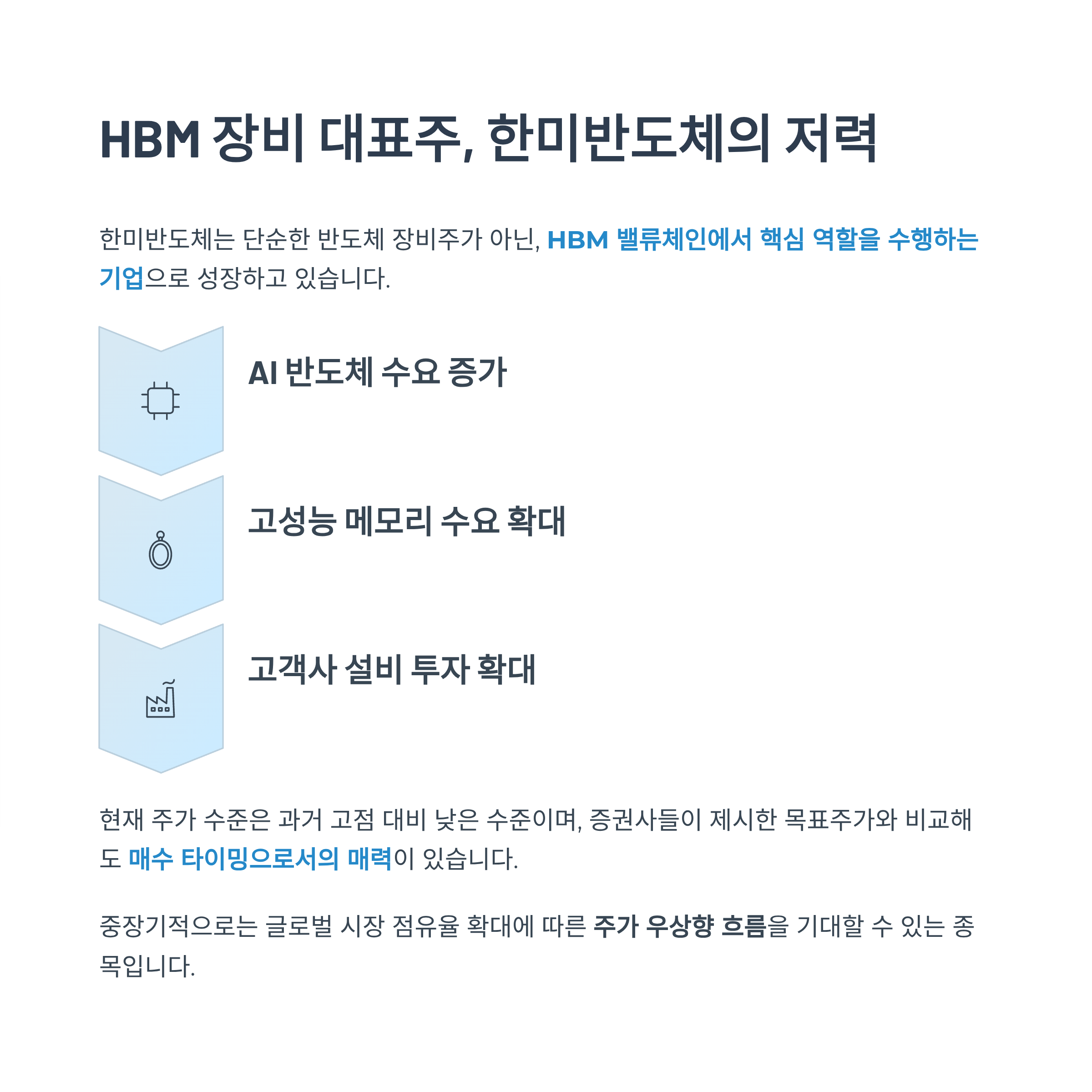 한미반도체(042700)는 국내 반도체 장비 업계에서 가장 주목받는 종목 중 하나로 꼽힙니다. 특히 최근 고대역폭메모리(HBM) 수요 증가와 함께 관련 장비를 공급하는 한미반도체의 실적과 주가 전망에 대한 관심이 더욱 높아지고 있습니다.