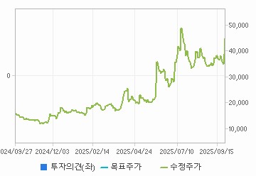 2023년 말 1만 원대였던 주가는 현재 약 44,800원 수준까지 반등한 상태입니다. 기술적으로는 34,000~40,000원대 매물대를 돌파하며 강한 지지선을 확보한 것으로 분석됩니다.