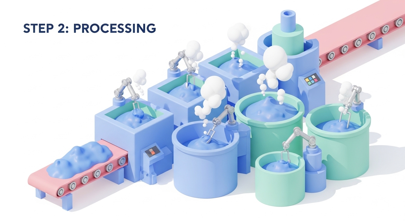 원재료 확보 → 소재 가공 → 배터리 제조 → 재활용까지