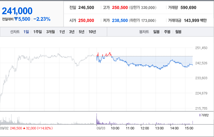 단기 포트폴리오를 구성할 때는 시가 총액과 장중 거래량도 중요합니다. 포스코퓨처엠의 시가 총액은 18조6686억 원이며 장중 거래량은 1,392,140원 을 기록했습니다. 대주주의 정보는 크게 중요하지 않지만 장기적인 관점에서는 확인하는 것이 좋겠습니다.